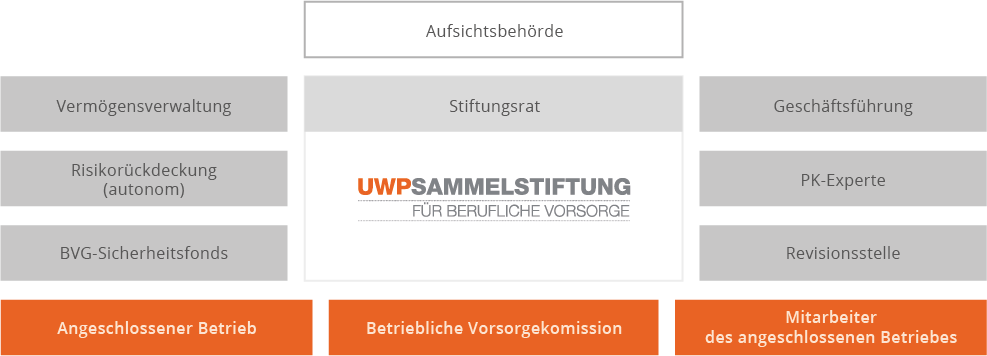 Die UWP ist eine unabhängige Sammelstiftung. Sie ist ihren angeschlossenen Betrieben und deren in der Sammelstiftung versicherten Destinatären verpflichtet. Der Stiftungsrat setzt sich paritätisch aus Vertretern der angeschlossenen Arbeitgeber sowie Vertretern der in der Sammelstiftung versicherten Destinatäre zusammen. Sie nutzt ihre Unabhängigkeit unternehmerisch, um für Ihre Versicherten die besten Vorsorgelösungen anzubieten.